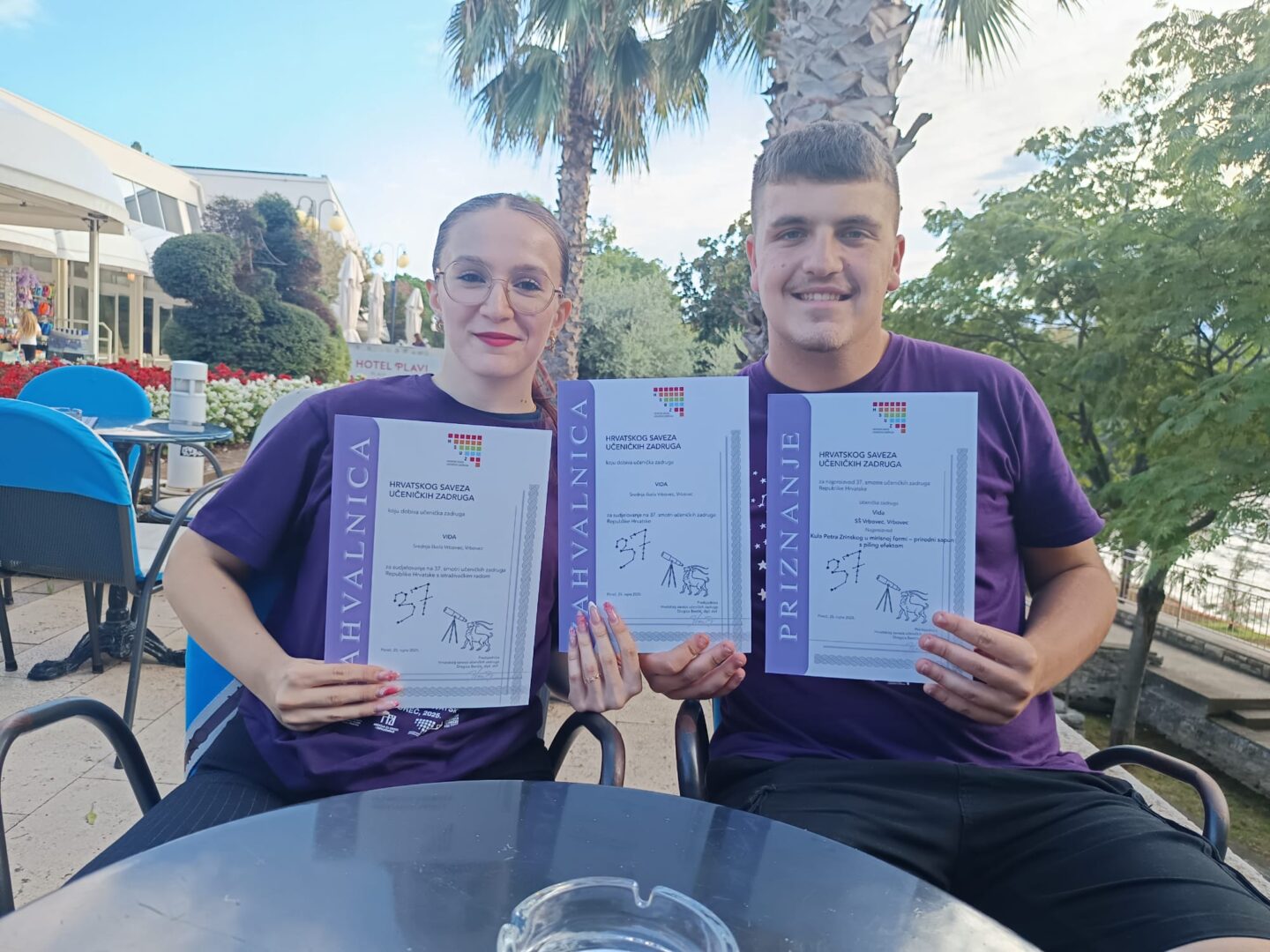 Posebno smo ponosni na našu učeničku zadrugu Vida Srednje škole Vrbovec te učenike Maju Grubešić i Marina Cvjetanovića koje je mentorirala nastavnica Marijana Radić. Na Smotri su prezentirali proizvod Kula Petra Zrinskog u mirisnoj formi – prirodni sapun s piling efektom, uz prikaz dijela praktičnog rada. Za ovaj inovativni proizvod dodijeljeno nam je priznanje za najproizvod 37. smotre učeničkih zadruga Republike Hrvatske.