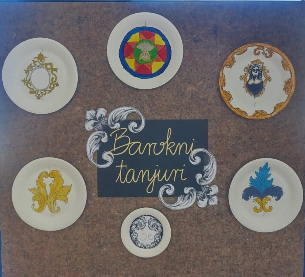 Učenici 3.e razreda učili su na nastavi Povijesti hrvatske kulturne baštine o baroknoj umjetnosti. Nakon obrade nastavne cjeline, dobili su kreativan zadatak – osmisliti barokne tanjure za posluživanje te izraditi vlastiti rad poštujući pravila i obilježja baroka.