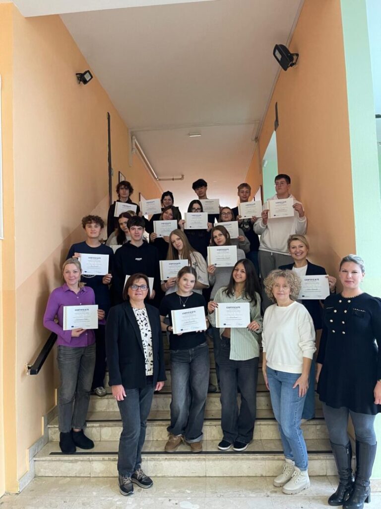 U petak, posljednjeg dana mobilnosti poljskih učenika u našoj školi, učenici su sudjelovali u rješavanju Escape Room aktivnosti o Hrvatskoj u mješovitim skupinama sastavljenima od poljskih i naših učenika, a najbrže skupine nagrađene su zasluženim nagradama. Nakon toga je ravnateljica gostima podijelila potvrde o sudjelovanju.