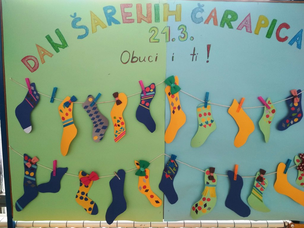 Svjetski je dan sindroma Down kada skrećemo pozornost na sve probleme i izazove s kojima se osobe sa sindromom Down, kao i njihovi roditelji i bližnji susreću. Ali se ukazuje i na njihovu posebnost pa su danas mnogi, a tako i mi dali podršku odjevanjem različitih čarapa. Simbol Dana sindroma Down su šarene čarape i predstavlja različitost. Nošenjem šarenih čarapa pokazali smo podršku borbi osoba s Down sindromom kako bi se što bolje integrirali u naše društvo!