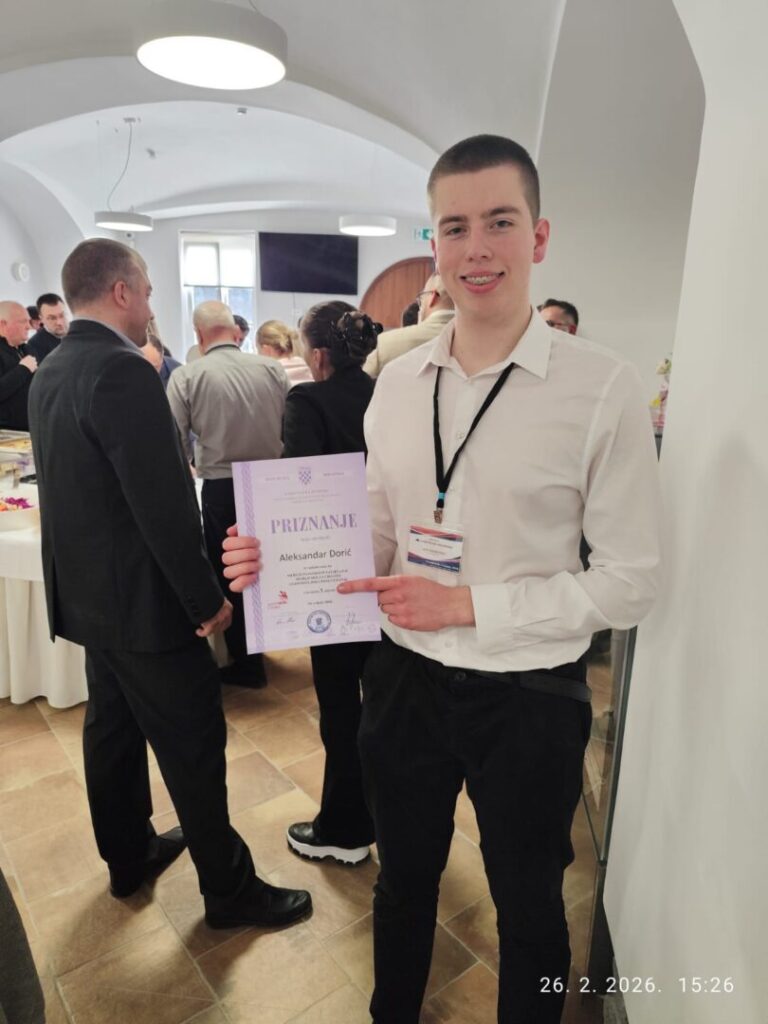 Na državno natjecanje u disciplini ugostiteljskog posluživanja idu David Kalšan iz Srednje škole Prelog koji je u Karlovcu osvojio prvo mjesto, drugoplasirani Tin Ćirković iz TUŠ-a i učenik Srednje škole Vrbovec Aleksandar Dorić koji je danas bio treći. Mentor učeniku Aleksandru Doriću je nastavnik Mladen Lusavec.