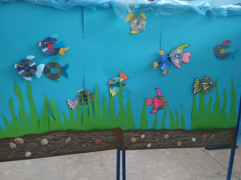 Želeći osvijestiti među učenicima i djelatnicima škole važnost voda za život na Zemlji i brižnog i odgovornog ponašanja prema vodama, učenici naše škole u njezinom su holu izradili akvarij recikliranjem starih cd-ova od kojih su napravljene ribice, te vreća za smeće kojima su uprizoreni morski valovi akvarija. U izradi ribica od cd-ova i uređivanju akvarija sudjelovali su učenici 1.g, 2.a, 2.b, 3.a, 3.b i 4. b razreda. Samu ideju izrade akvarija predložila je profesorica Sanja Lugarić, te ideju razradila s profesoricom Anicom Hrlec.