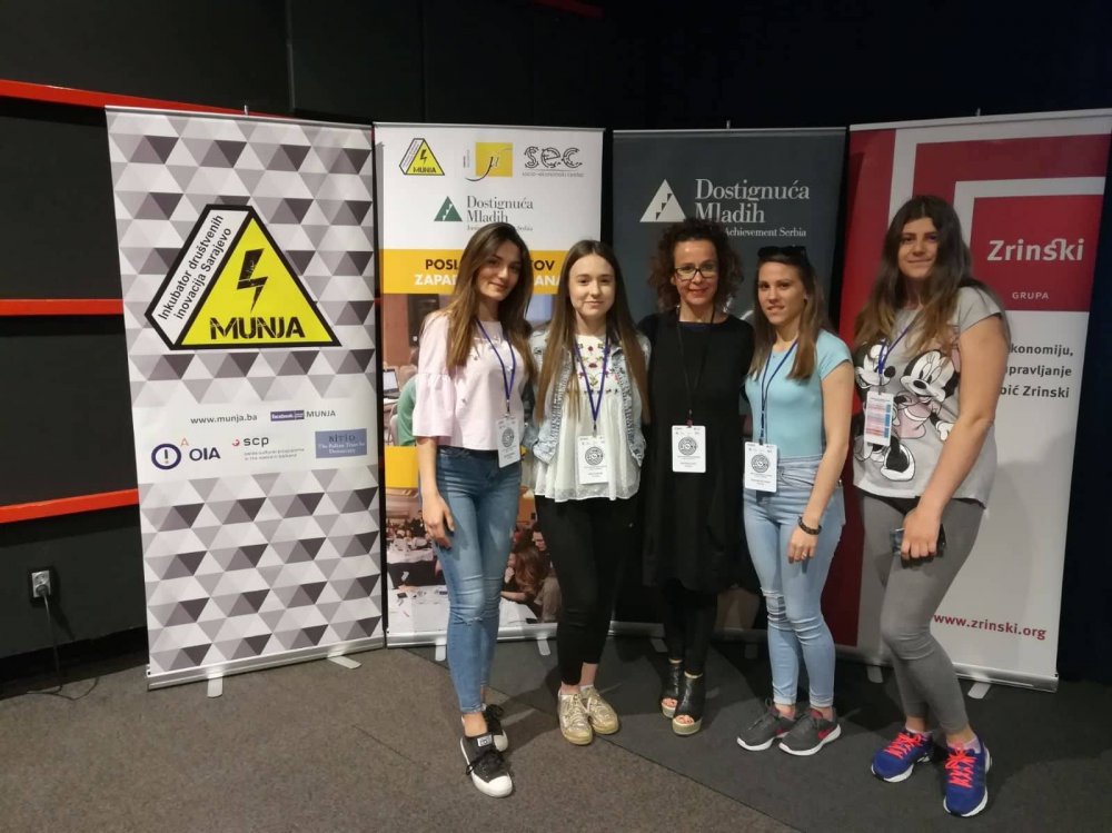I ove školske godine učenice naše škole sudjelovale su na natjecanju POSLOVNI IZAZOV ZAPADNOG BALKANA ( Western Balkans Business Challenge ), održanom u Sarajevu od 27. – 29. 4. 2018. godine. Riječ je o učenici 3.g razreda Veroniki Jagatić Knez te o prošlogodišnjim pobjednicama hrvatskog Poslovnog izazova „ Vremenskim putnicama „ iz ovogodišnjeg 4. g razreda : Moniki Perolić, Veroniki Đuranec i Ines Kuzmek. U pratnji učenica bila je mentorica Veronika Sorić, prof.