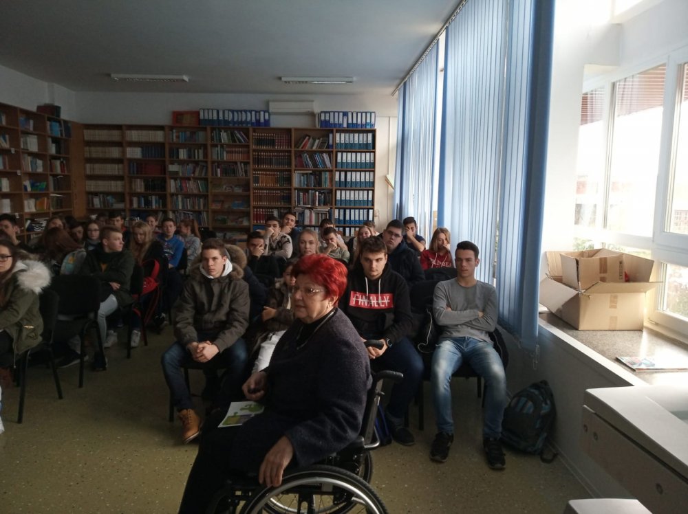 U ponedjeljak 17.12.2018. od 12.05 do 13.45 za učenike 3.e, 1.e i 2.f u sklopu Projekta Zagrebačke županije i Udruge za promicanje istih mogućnosti održano je predavanje i radionice na temu Bonton za bolje razumijevanje osoba s invaliditetom. Predavanje je održala mr.sc. Mirjana Dobranović, predsjednica UPIM-a koja ističe da je prihvaćanje različitosti osnovni preduvjet za osiguranje jednakosti za sve. Svaka osoba na svijetu je jedinstvena, svatko od nas je neponovljiv i drugačiji od ostalih. U našoj galeriji pogledajte kako je to izgledalo.