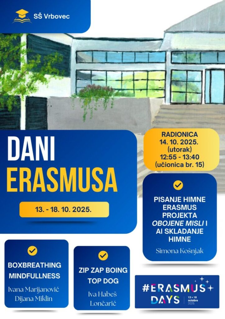 Pozivamo sve učenike i djelatnike škole da danas stave zelenu vrpcu u znak podrške svim osobama koje pate od različitih psihičkih tegoba i poremećaja te da nam se u utorak, 14. listopada pridruže na radionici u sklopu obilježavanja Dana Erasmusa na kojoj će neke od aktivnosti također biti vezane uz poboljšanje mentalnog zdravlja.